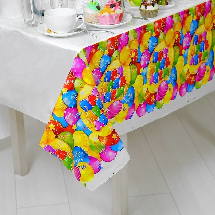 При организации мероприятия каждая мелочь играет важную роль и создаёт неповторимую атмосферу легкости и веселья. Скатерть – идеальный вариант для вечеринки или детского праздника. Практичность в использовании и дизайн – вот что делает её аксессуаром №1 на любом мероприятии. Выполненная из плотной клеенки, она без труда чистится от загрязнений и подходит для многоразового использования.