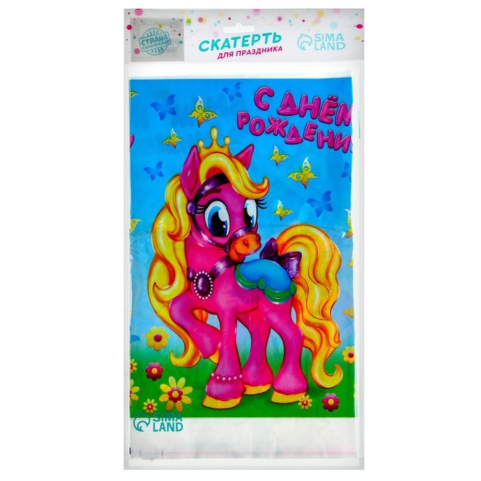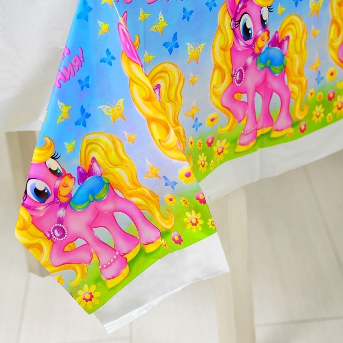 Скатерть одноразовая «С днём рождения», пони, 180х137 см