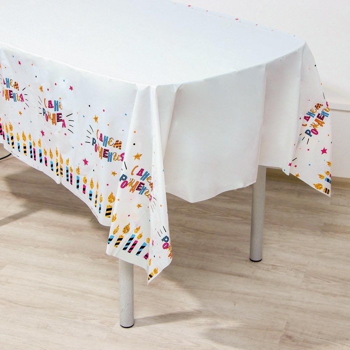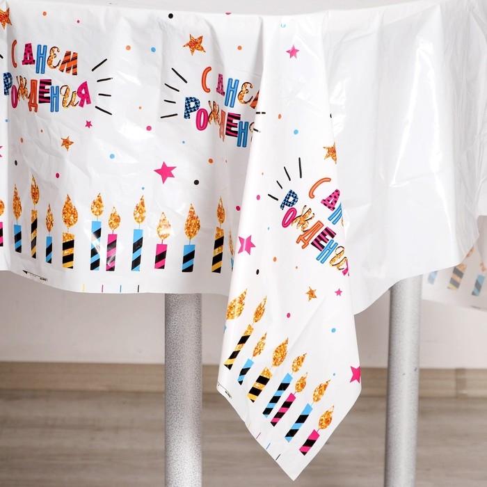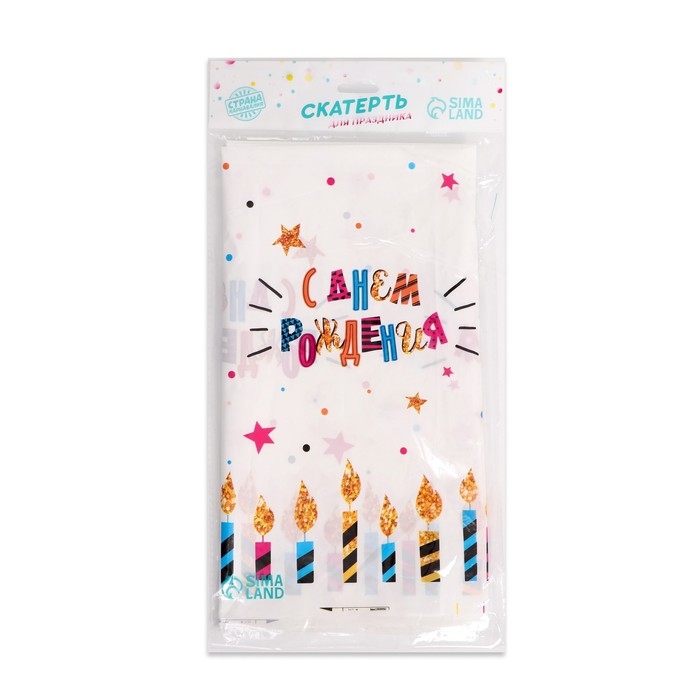Скатерть одноразовая «С днём рождения», свечи, 180×137 см