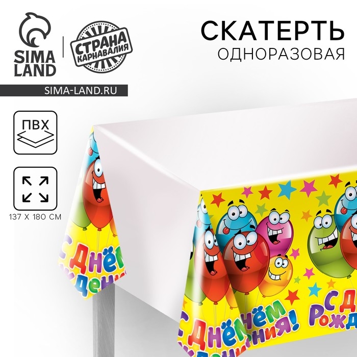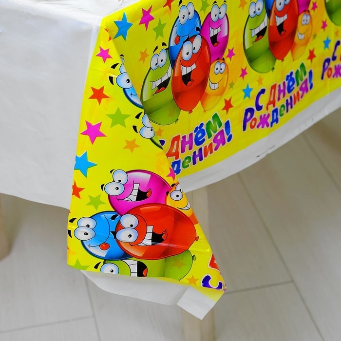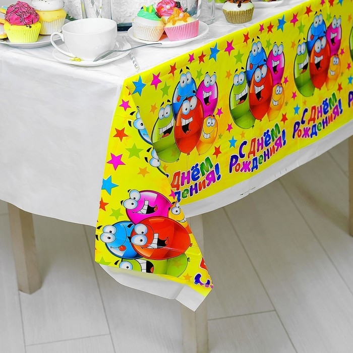 Скатерть одноразовая «С днём рождения», весёлые шары, универсальная