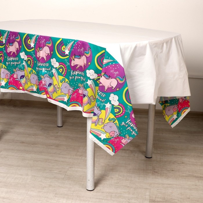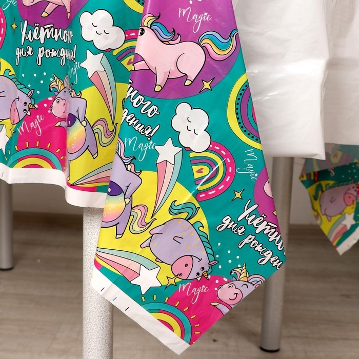 Скатерть одноразовая «Улётного дня рождения!», единороги, 137×180см