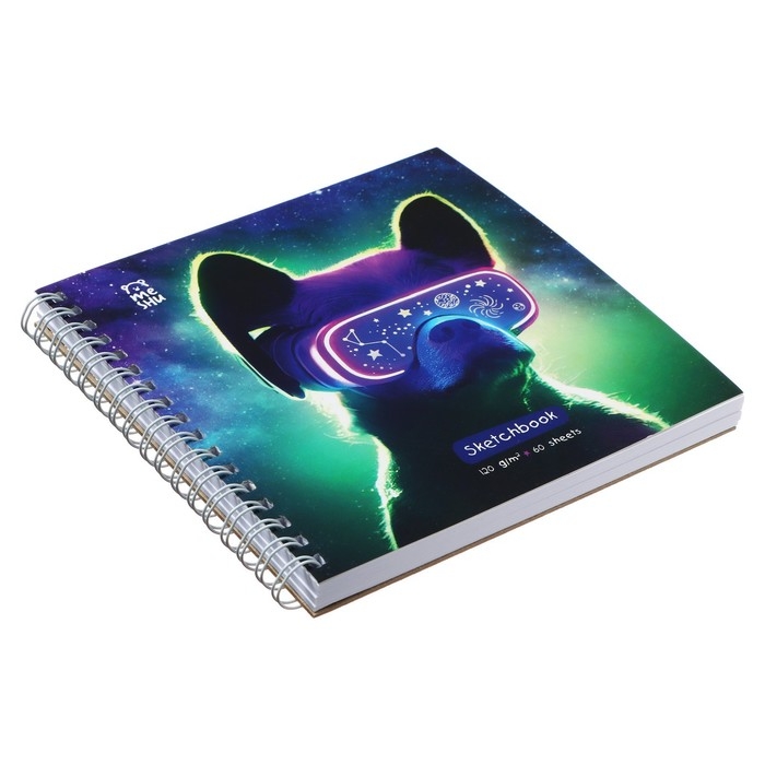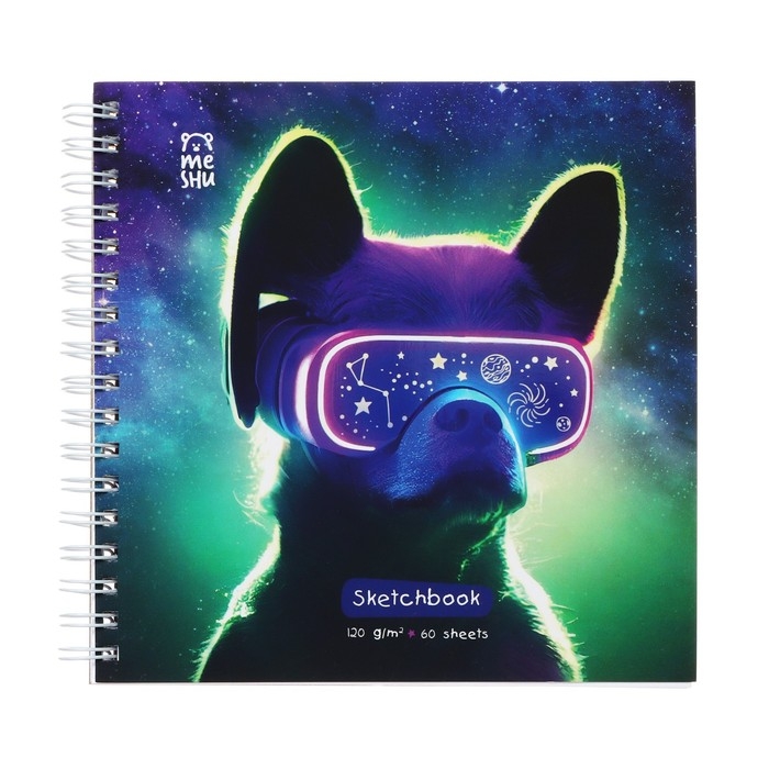 Скетчбук MESHU 150 х 150 мм, 60 листов, на гребне "Виртуальный мир", выборочный лак, покрытие Soft-Touch, блок 120 г/м2