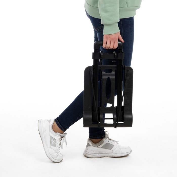 Складная тележка помогает переносить тяжелые вещи и багаж с минимальными усилиями. Она состоит из платформы для размещения груза и складной телескопической ручки. Механизм складывания экономит место при хранении или транспортировке.