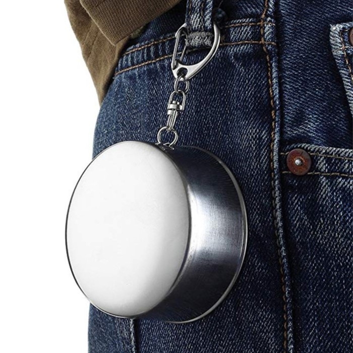Стакан из детства вернет вас в беззаботное время СССР. Компактный раскладной стакан, складывающийся и раскладывающийся одним движением руки, имеет карабин, который можно легко зацепить на хлястик ваших брюк или рюкзак. Рюмка туристическая из нержавеющей стали закрывается крышкой, что позволяет ей быть всегда компактной, легко помещающейся в карман.