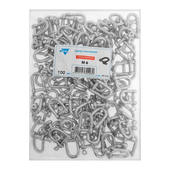 Скоба такелажная, тип прямой, 6 мм, цинк, 100 шт