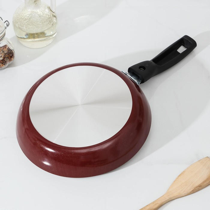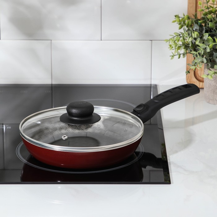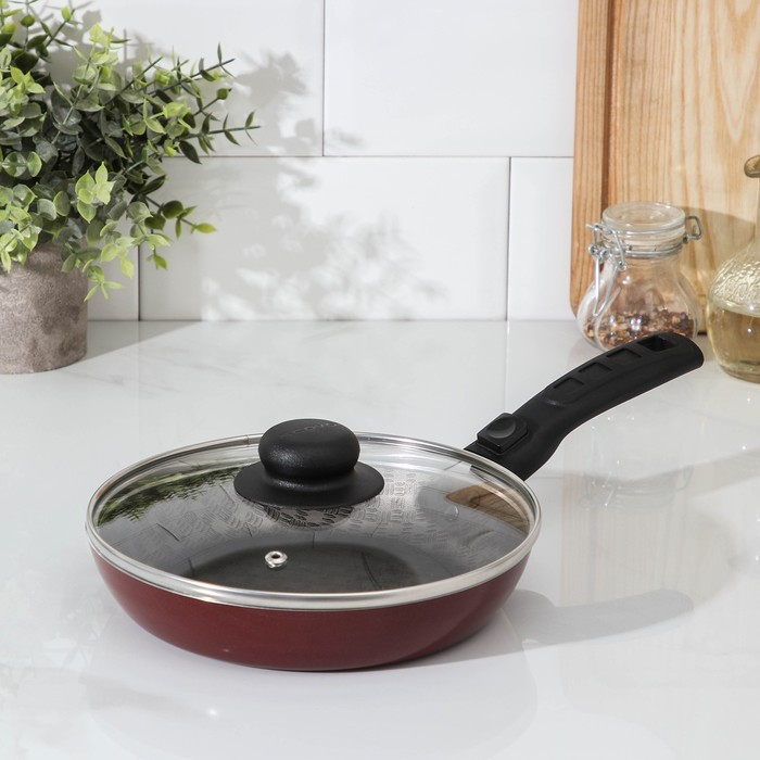 Сковорода «Альфа», d=20 см, съёмная ручка, стеклянная крышка, антипригарное покрытие, цвет бордовый