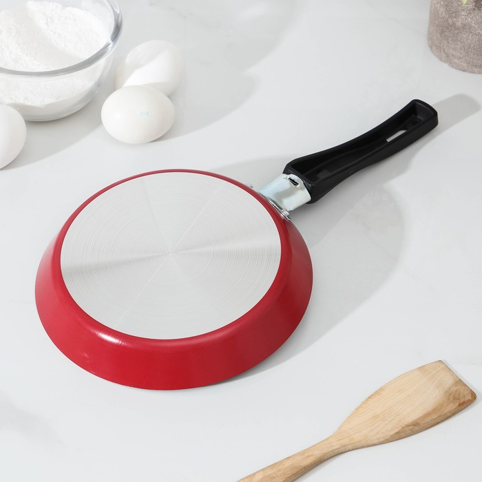 Сковорода блинная Colibri, d=18 см, пластиковая ручка, антипригарное покрытие, цвет красный