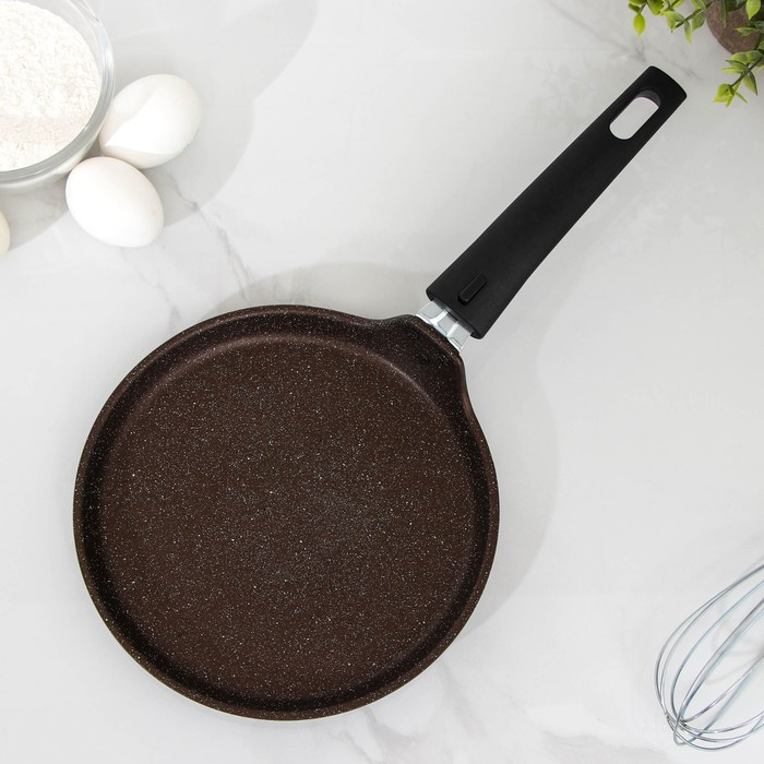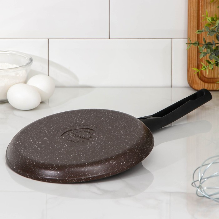 Сковорода блинная , d=20 см, пластиковая ручка, антипригарное покрытие, цвет кофейный мрамор