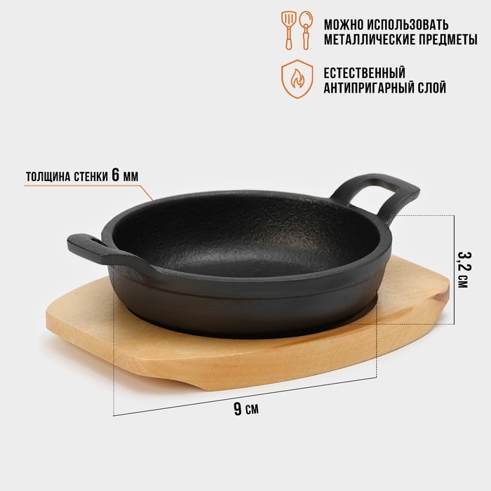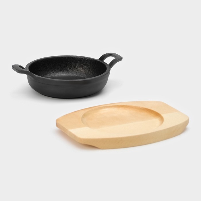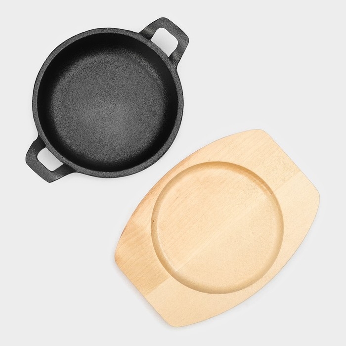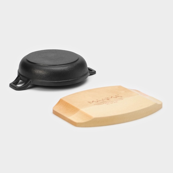 Сковорода чугунная Magma. В комплекте идёт деревянная подставка.