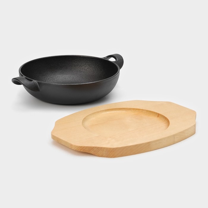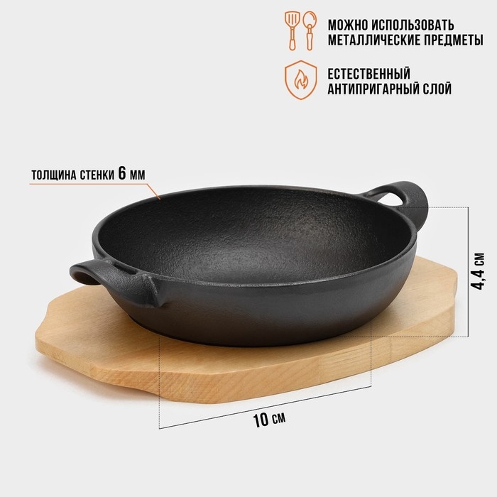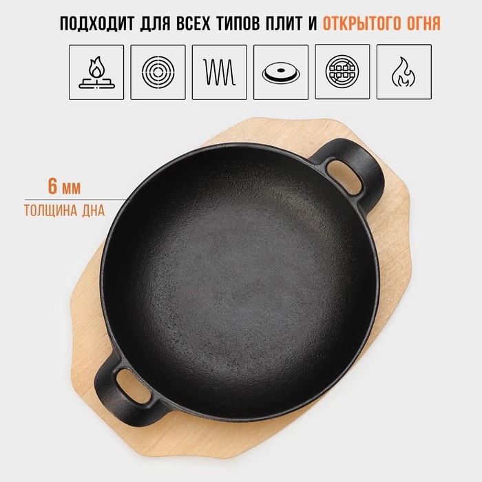 Сковорода чугунная Magma. В комплекте идёт деревянная подставка.