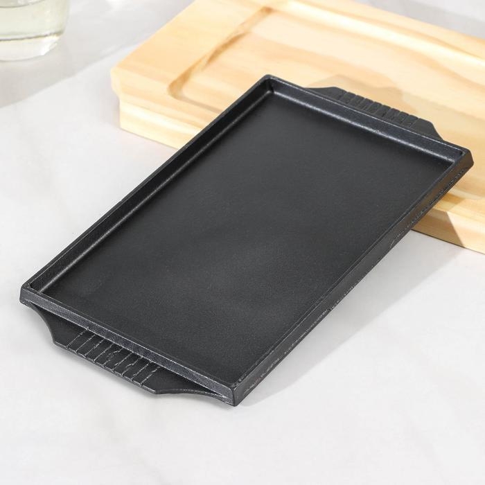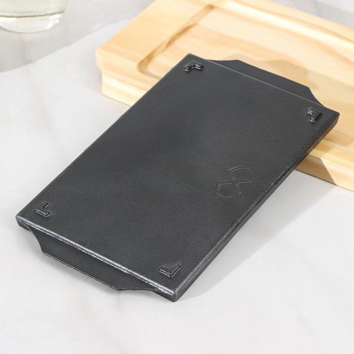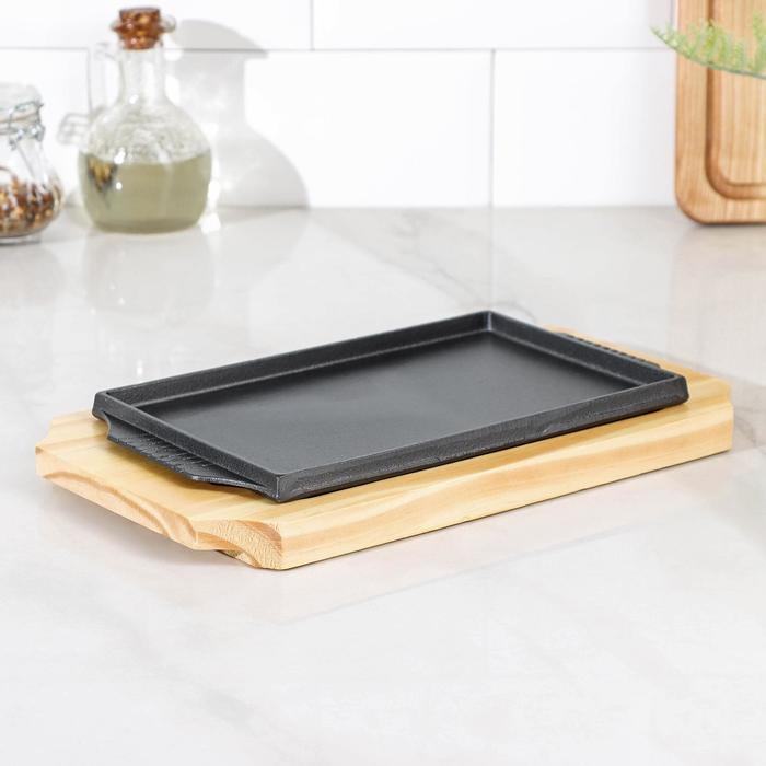 Сковорода чугунная «Прямоугольник», 25×14 см, на деревянной подставке