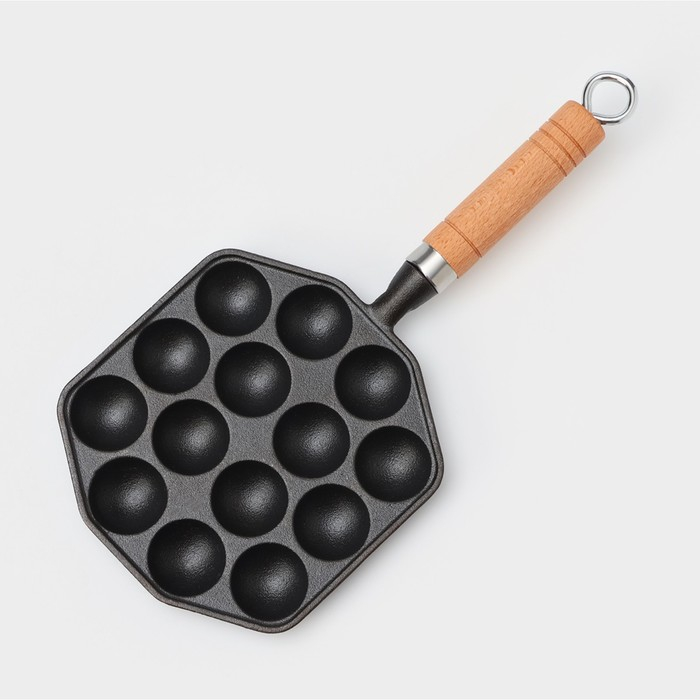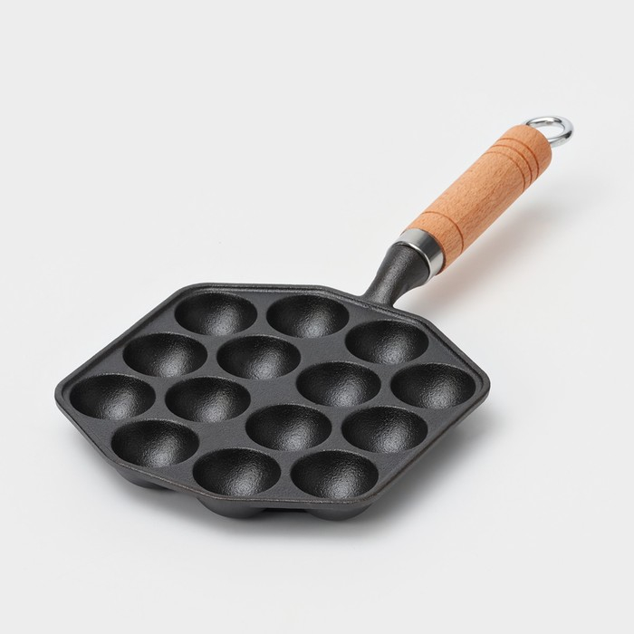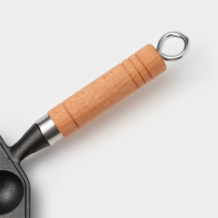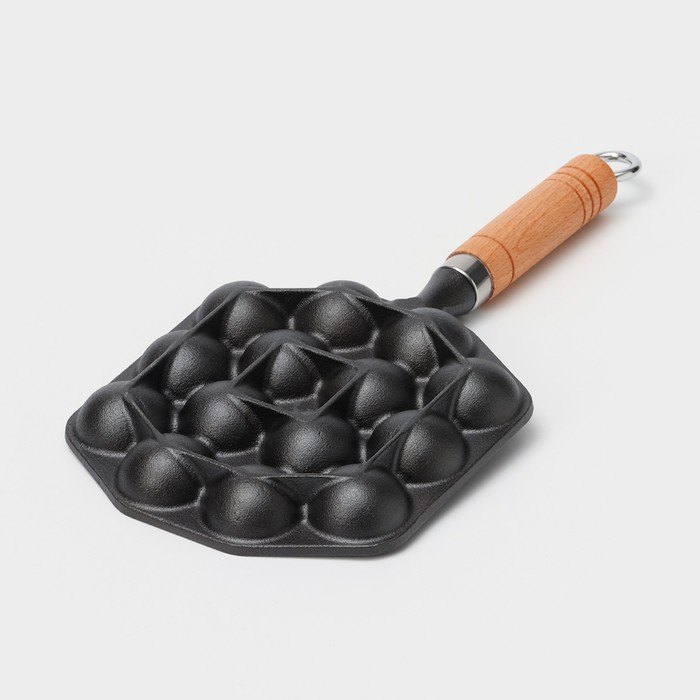 Сковорода чугунная «Сферос», 14 ячеек, 36×17×2,5 см, деревянная ручка