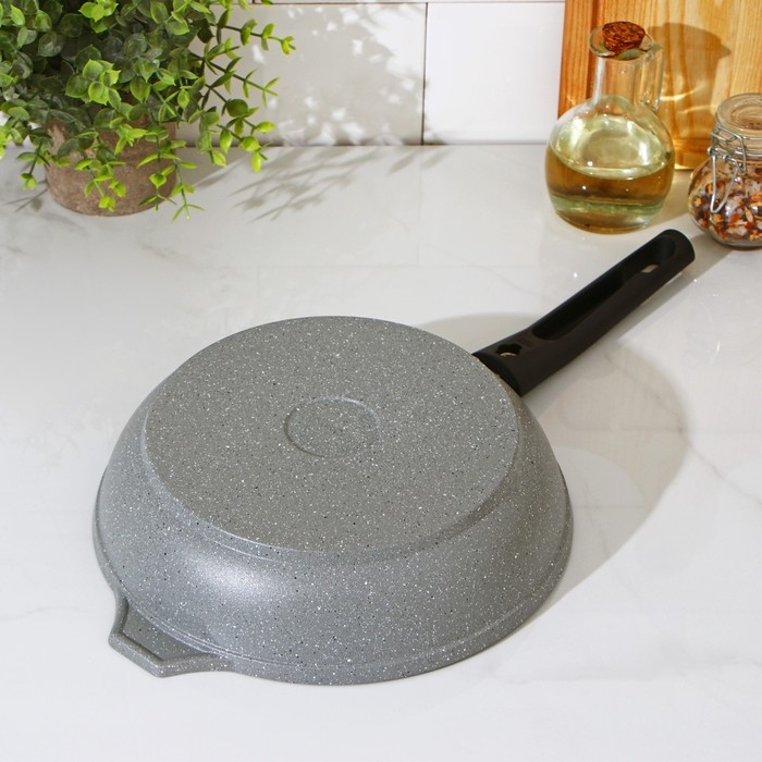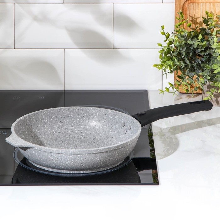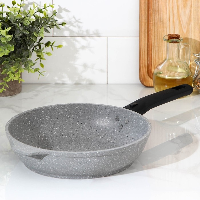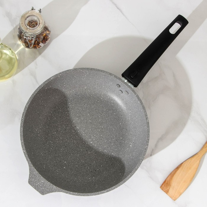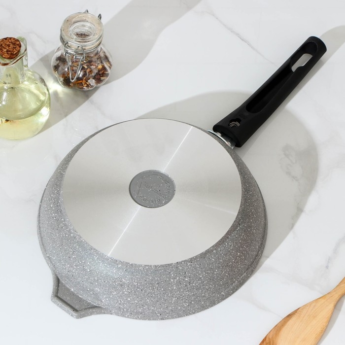 Сковорода, d=22 см, антипригарное покрытие, съёмная ручка, цвет светлый мрамор