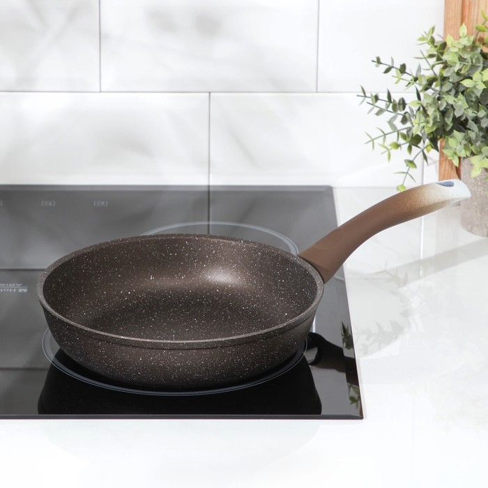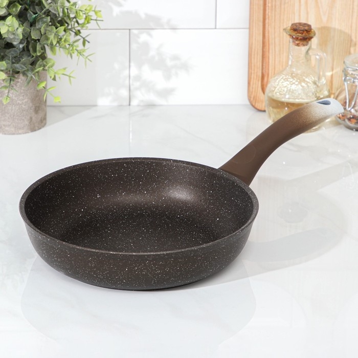 Сковорода, d=22 см, пластиковая ручка, антипригарное покрытие, цвет кофейный мрамор
