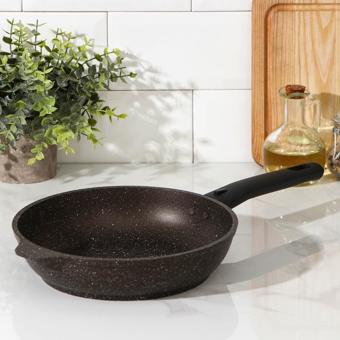 Сковорода, d=22 см, съёмная ручка, антипригарное покрытие, цвет кофейный мрамор