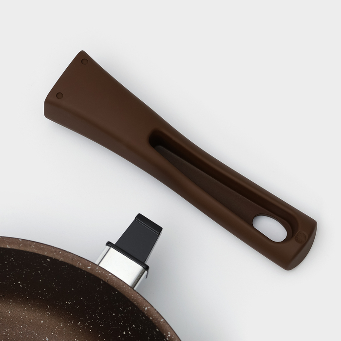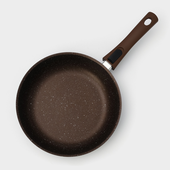 Сковорода, d=26 см, съёмная ручка, антипригарное покрытие, цвет кофейный мрамор