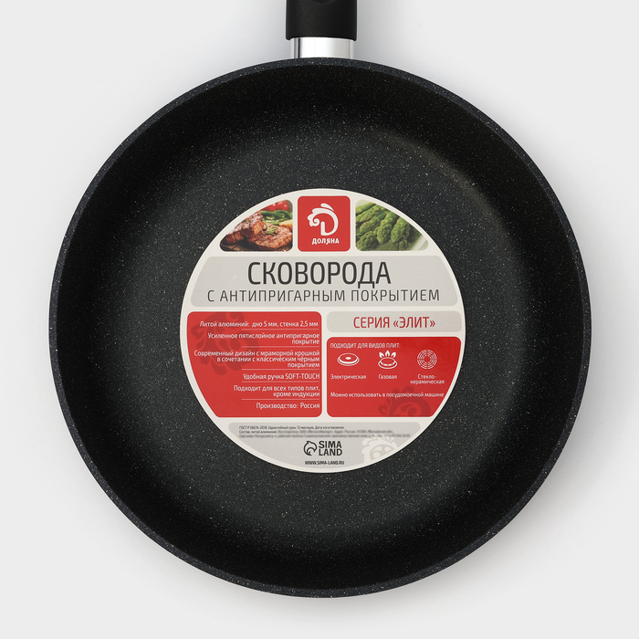 Сковорода Доляна «Элит», d=28 см, пластиковая ручка, антипригарное покрытие