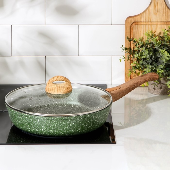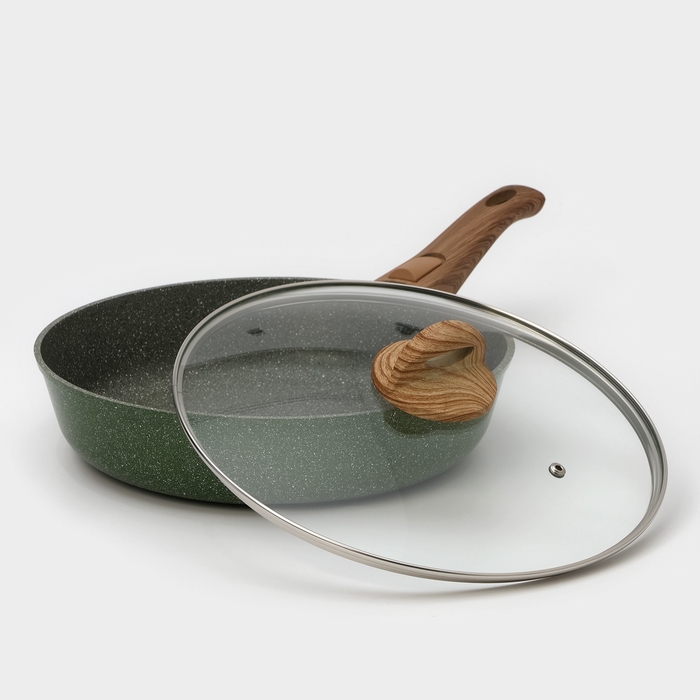 Сковорода Доляна «Форест», d=28 см, стеклянная крышка, съёмная ручка, антипригарное покрытие