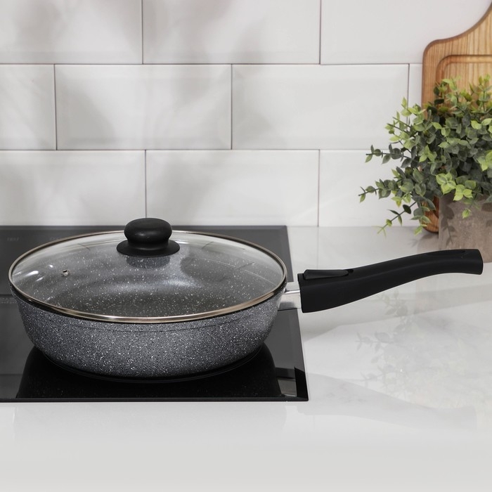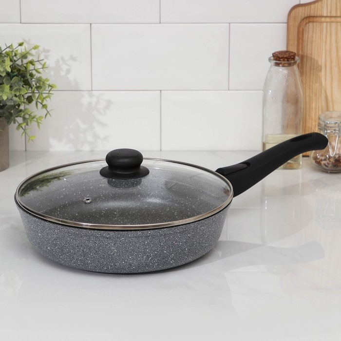 Сковорода Доляна «Марбл», d=26 см, стеклянная крышка, съёмная ручка, антипригарное покрытие