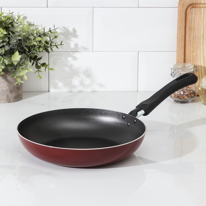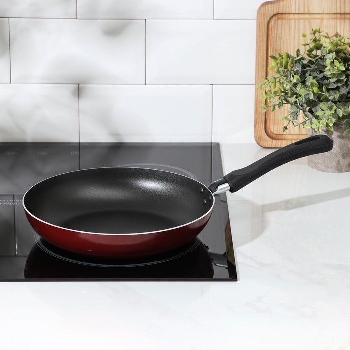 Сковорода «Эксперт», d=24 см, пластиковая ручка, антипригарное покрытие, цвет бордовый