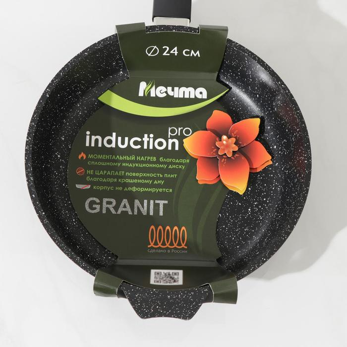 Сковорода «Гранит Black» Induction Pro, d=24 см, пластиковая ручка, антипригарное покрытие, цвет чёрный