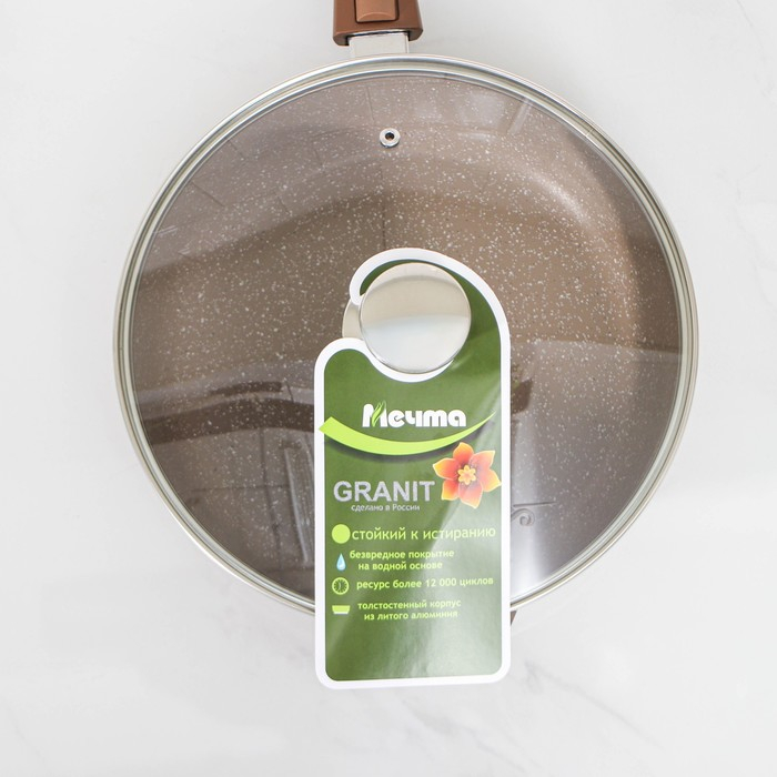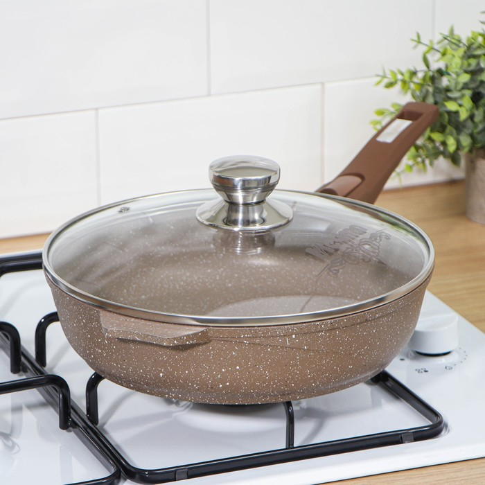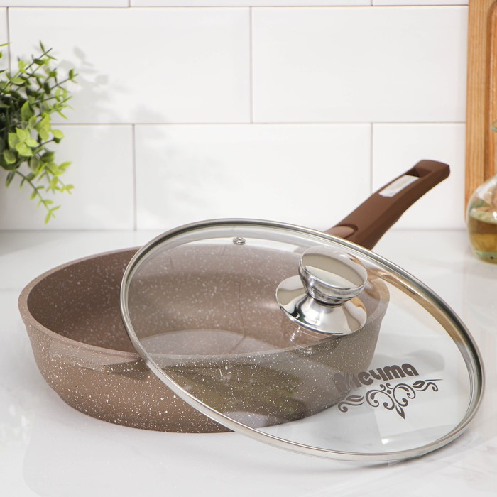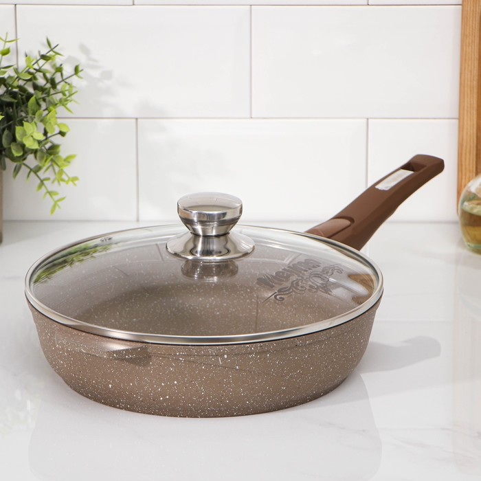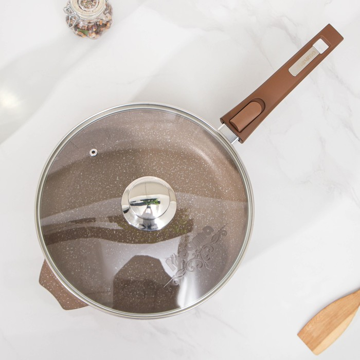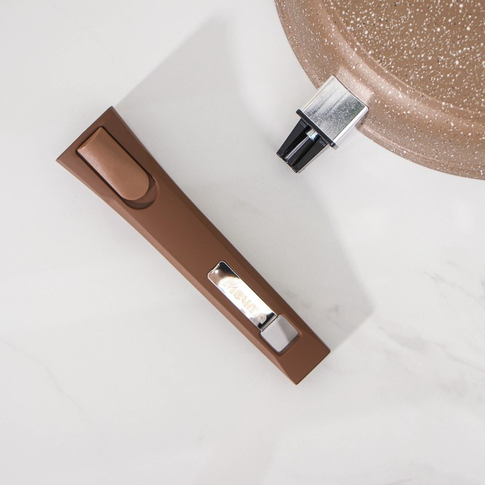 Сковорода «Гранит», d=26 см, съёмная ручка, стеклянная крышка, антипригарное покрытие, цвет коричневый