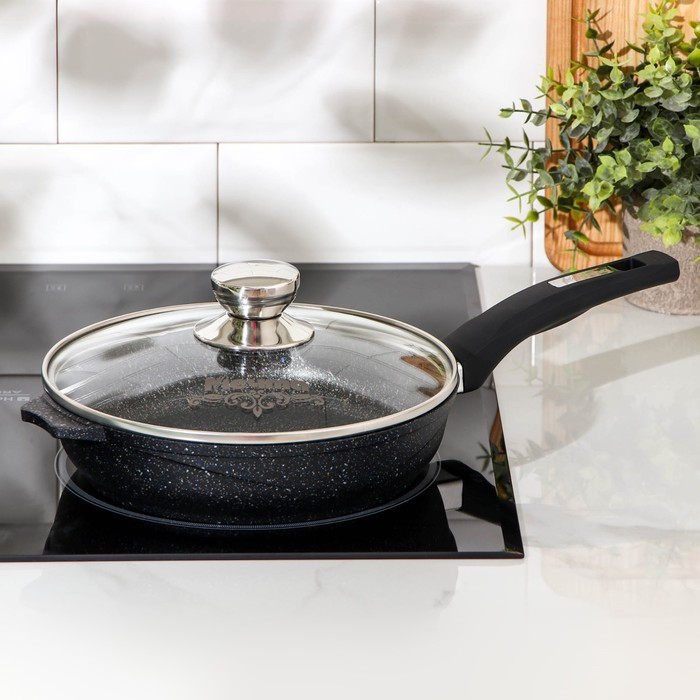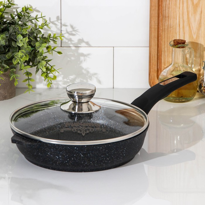 Сковорода «Гранит Star», d=22 см, стеклянная крышка, антипригарное покрытие, тёмно-синий