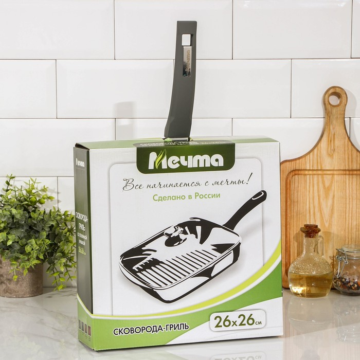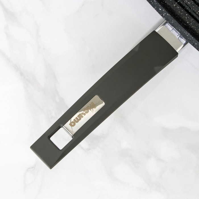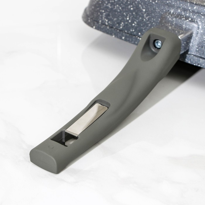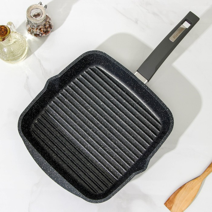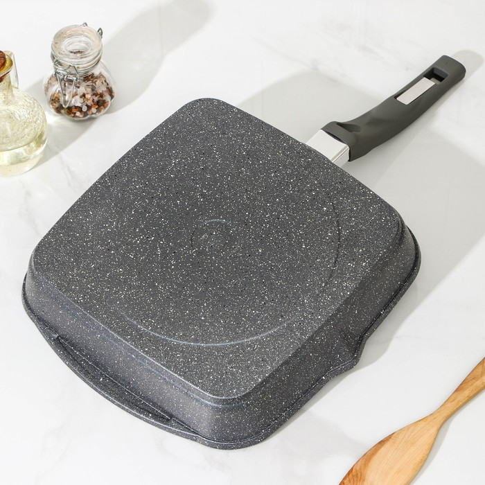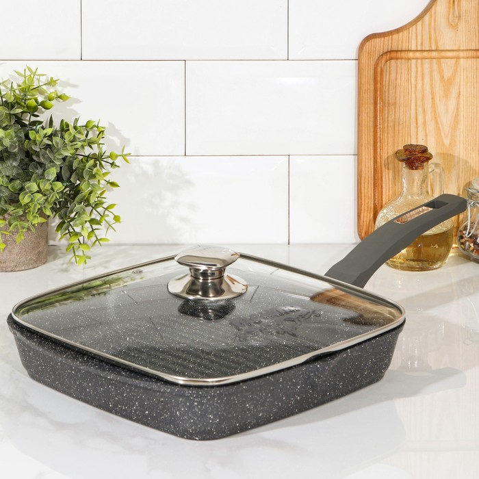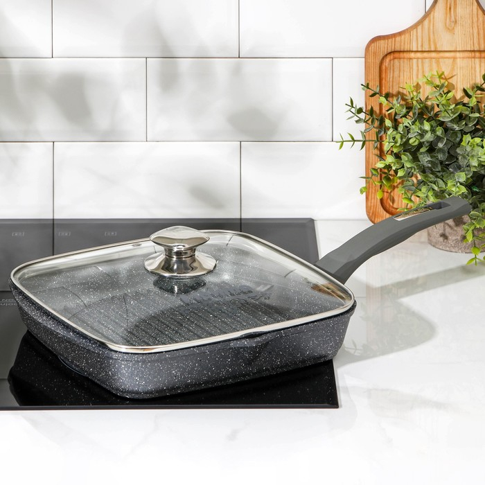 Сковорода-гриль квадратная «Гранит», 26×26 см, пластиковая ручка, стеклянная крышка, антипригарное покрытие, цвет серый