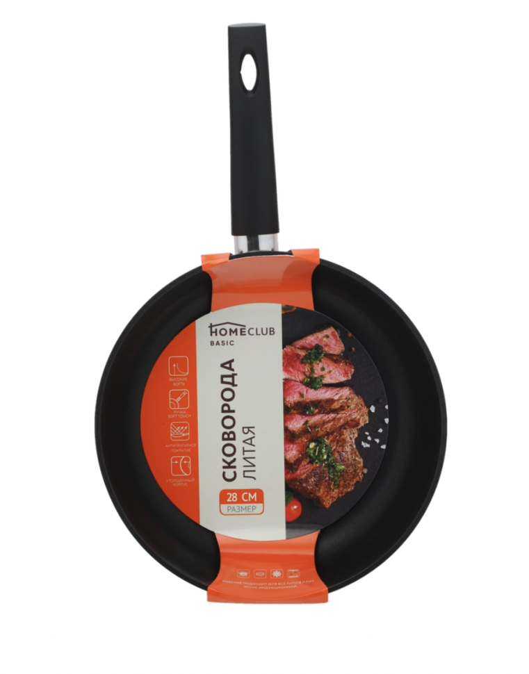 Сковорода HOMECLUB Basic 28см литая, ручка soft-touch
