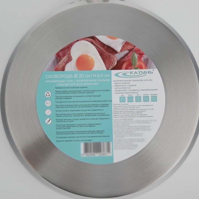Сковорода «Общепит», d=20 см, h=6 см, корпус 0,6 мм, дно ТРС 3,5 мм, антипригарное покрытие, индукция