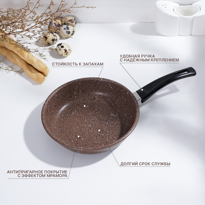 Сковорода Rock, d=17 см, пластиковая ручка, антипригарное покрытие, цвет коричневый