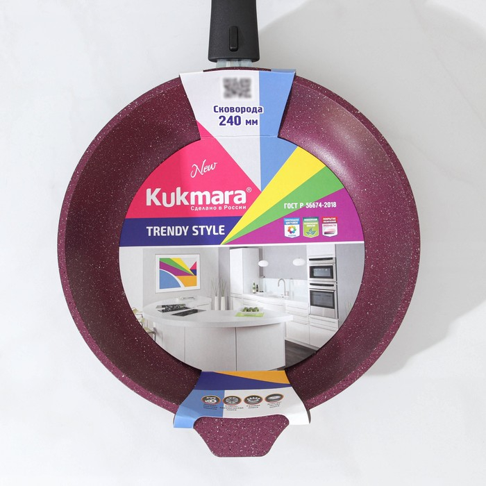 Посуда линии Trendy style разработана в соответствии с последними модными тенденциями. Сковорода Kukmara сделана из литого алюминия, с внутренней и внешней стороны — антипригарное покрытие увеличенной прочности, изготовлено на водной основе по немецким технологиям.