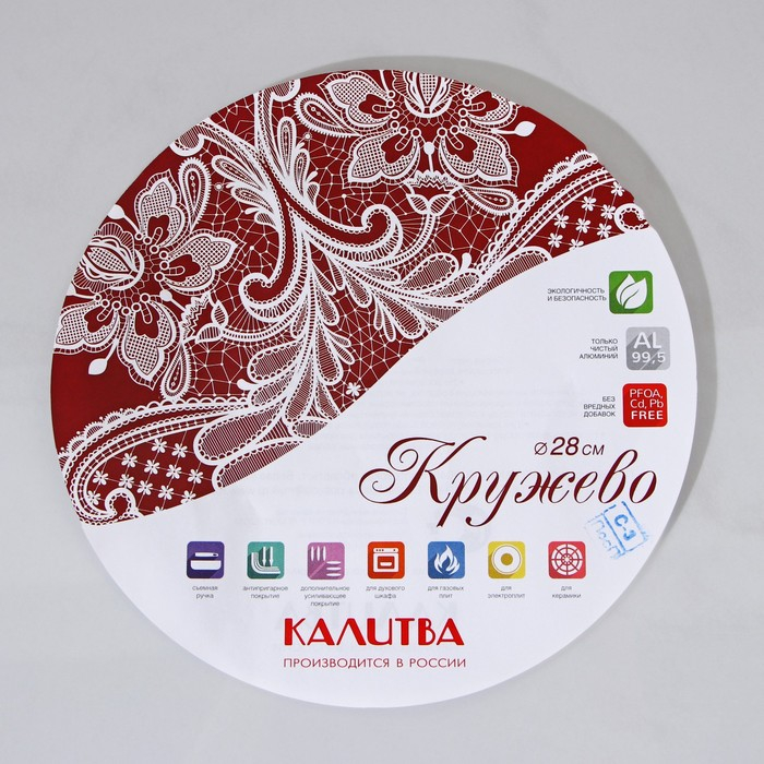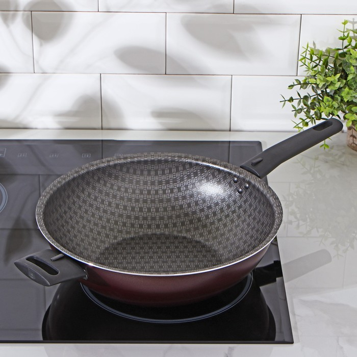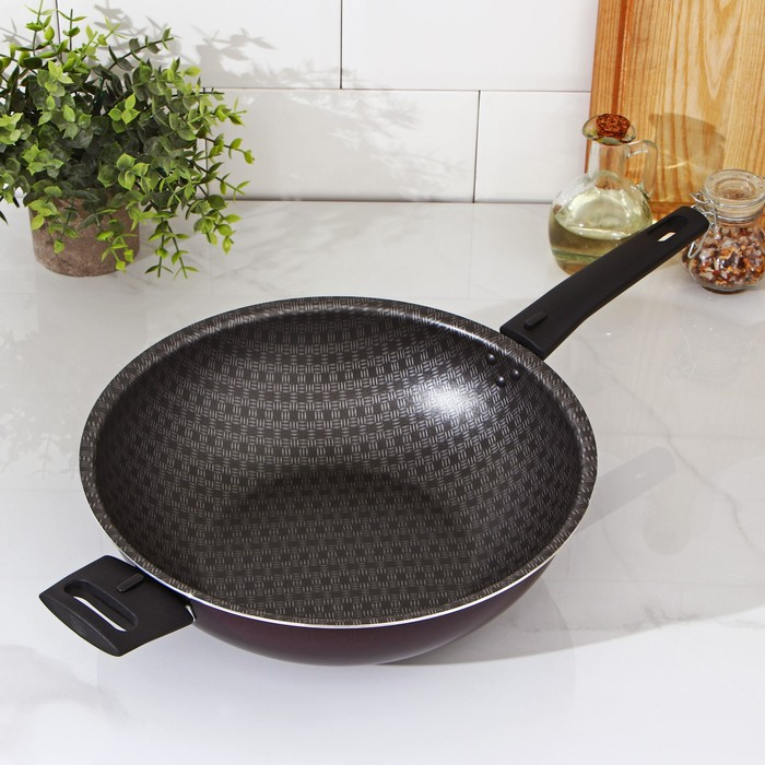 Сковорода ВОК «Хозяюшка», d=28 см, с 2 ручками, антипригарное покрытие, цвет бордовый
