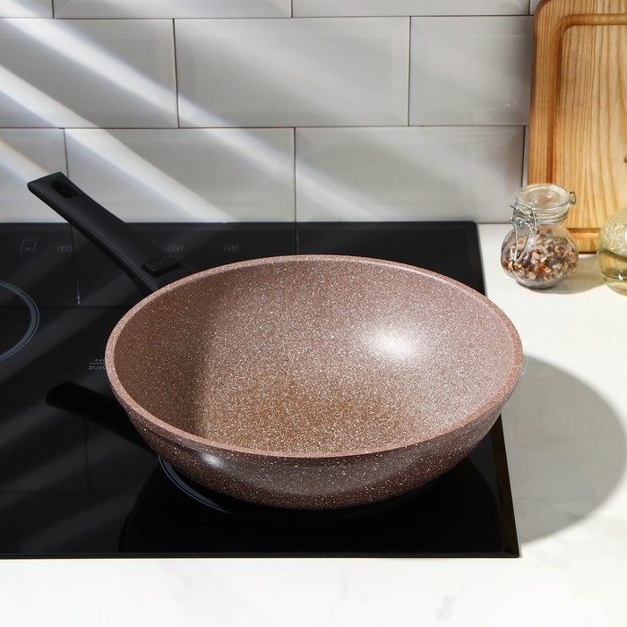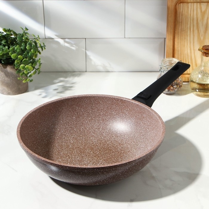 Сковорода WOK Доляна «Брауни», d=28 см, съёмная ручка, антипригарное покрытие, индукция