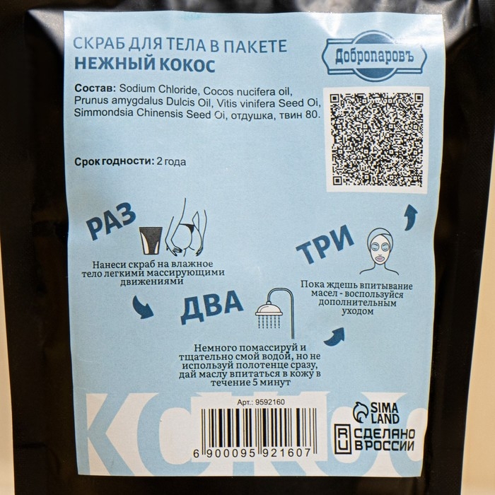 Скраб для тела в пакете "Нежный кокос" 200 г с косметическими маслами