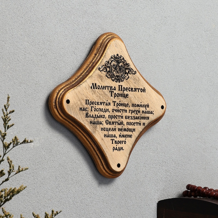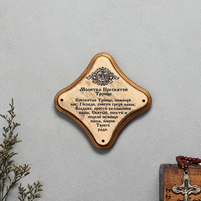 Скрижаль "Молитва пресвятой Троице", цвет палисандр, 17,5х17,5х2 см, берёза