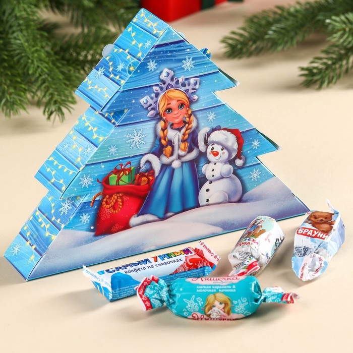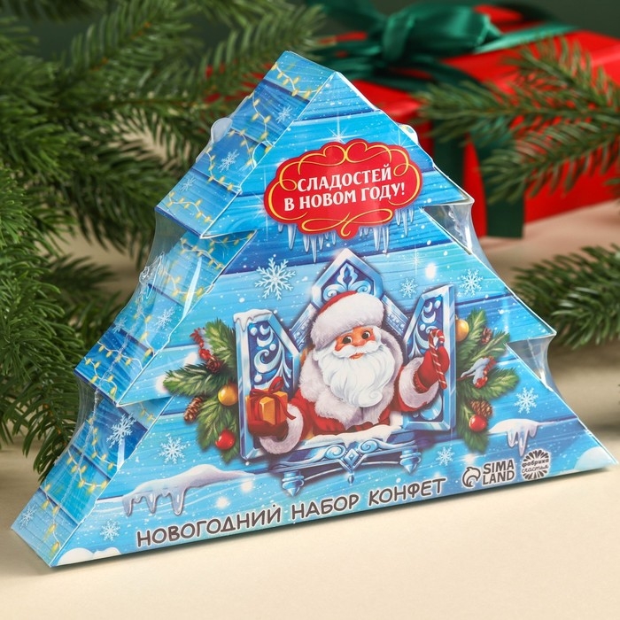 Сладкий подарок с конфетами «Дед Мороз» в коробке ёлочке, 250 г.