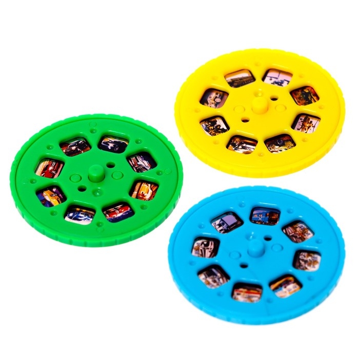 Вставив в проектор диск со слайдами и направив на любую ровную поверхность, вы получите яркие изображения с разным транспортом.