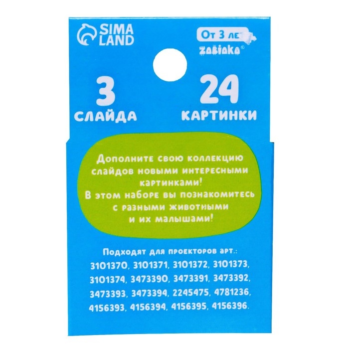 Вставив в проектор диск со слайдами и направив на любую ровную поверхность, вы получите яркие изображения с разными зверятами и их мамами.