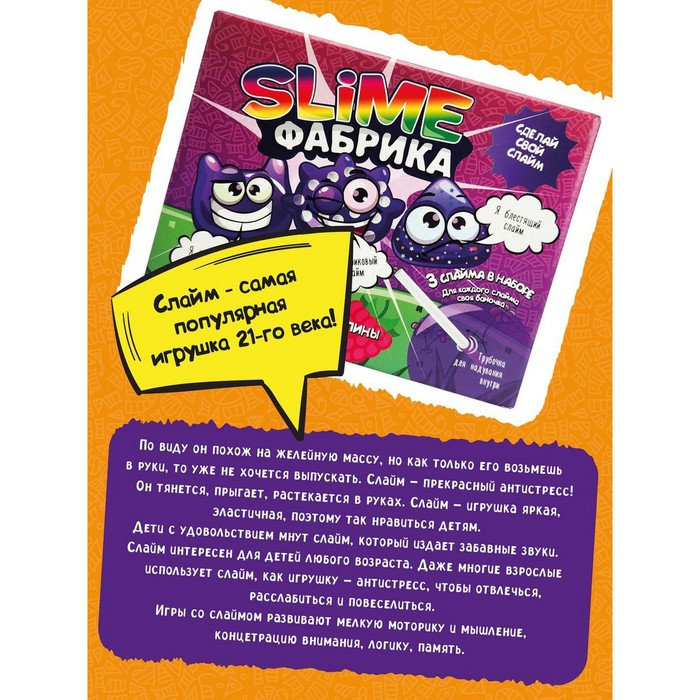 Слайм фабрика «Малина» — это набор для опытов и экспериментов, который предоставит вам и вашим детям возможность создать, свой индивидуальный слайм лизун.