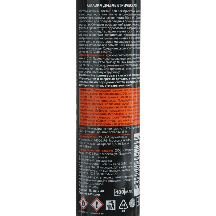 Смазка диэлектрическая Элтранс EFX-812, для электроконтактов, 400 мл