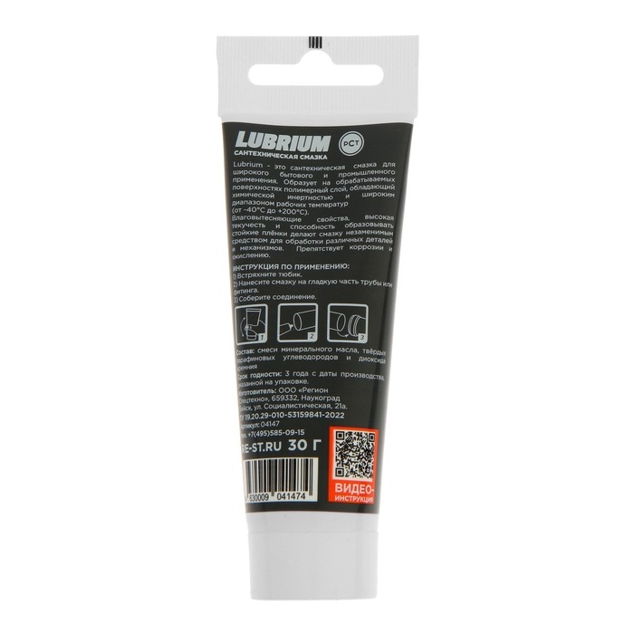 Смазка для колец канализационных труб LUBRIUM, тюбик 30 г, с еврослотом