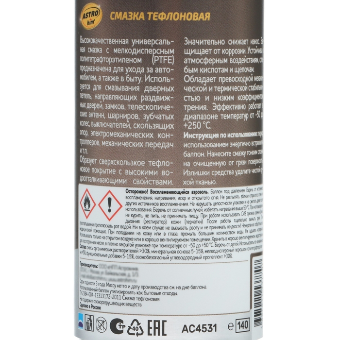 Смазка тефлоновая Astrohim, 140 мл, аэрозоль, АС - 4531