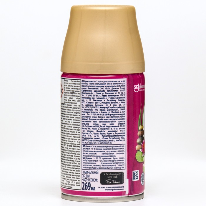 Сменный баллон предназначен для использования в специальном автоматическом распылителе Glade. Он эффективно устраняет неприятные запахи и освежает воздух в помещении, наполняя его умиротворяющим фруктово-цветочным ароматом. Можно использовать в любом помещении, включая санузел. При распылении с 36-минутным интервалом одного баллона хватает на 60 дней.