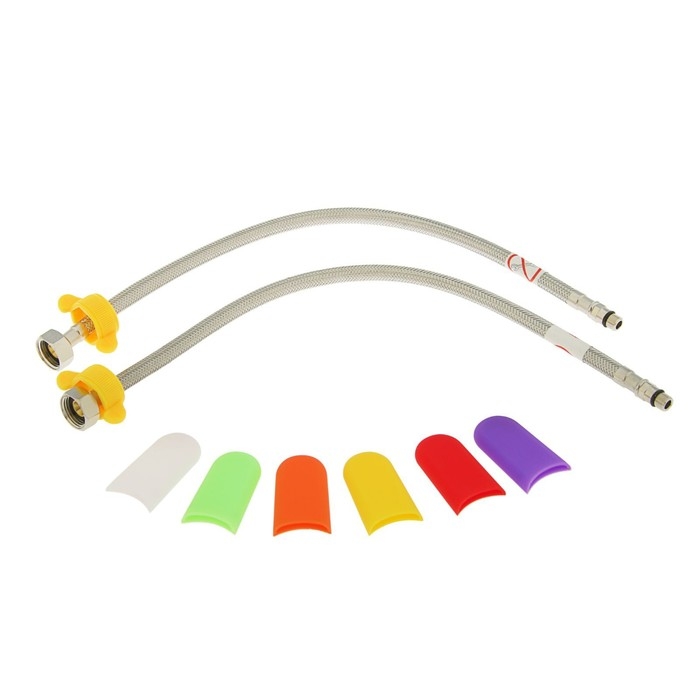 Однорычажный смеситель с длинным изливом устанавливается на раковину. В комплект с сантехникой входит набор сменных накладок разных цветов: