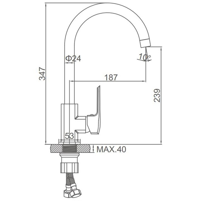 Смеситель для кухни Accoona A4555, однорычажный, высокий, хром