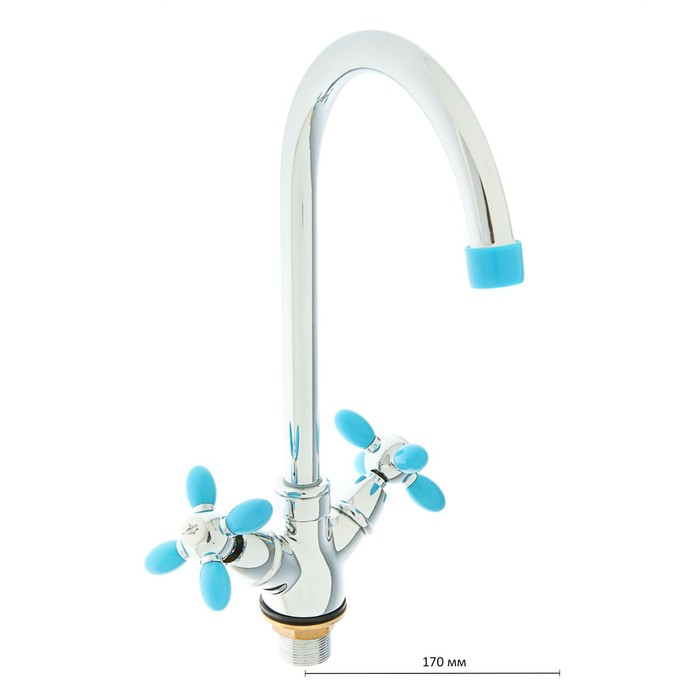 Смеситель для кухни Accoona A4582M, двухрычажный, высокий излив, синий/хром