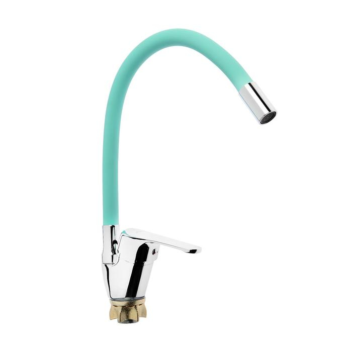 Смеситель для кухни Accoona A4844K, однорычажный, силиконовый излив, силумин, зеленый/хром