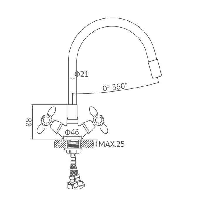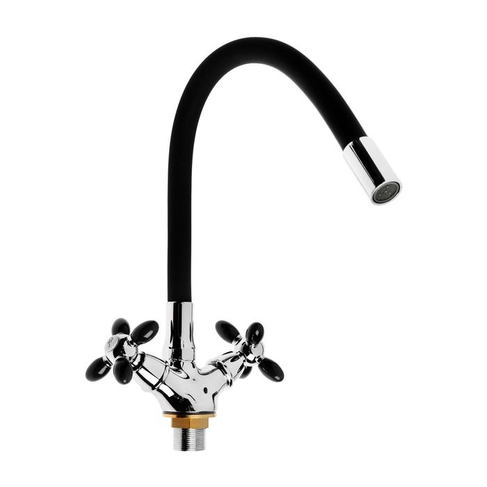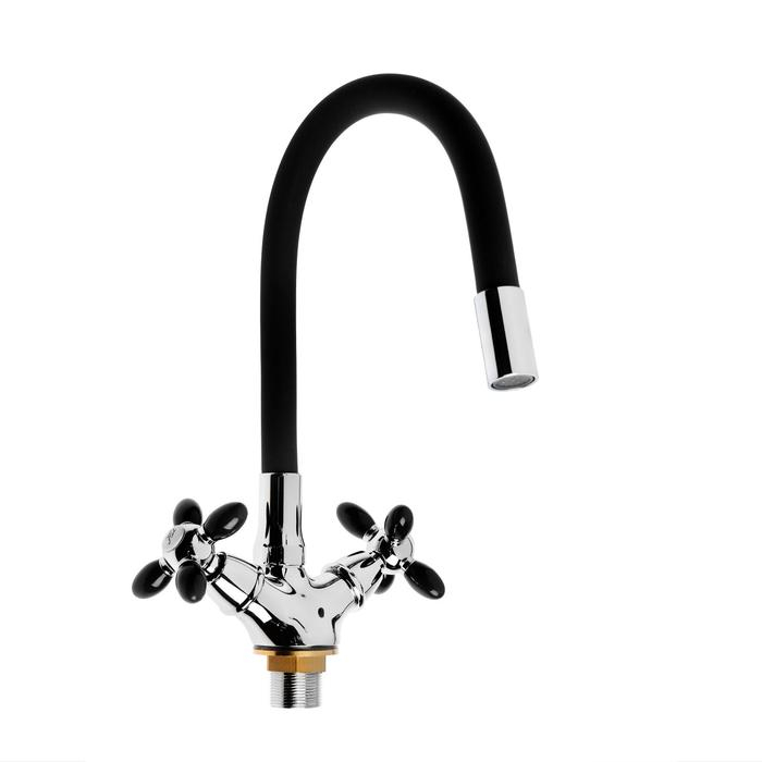 Смеситель для кухни Accoona A4882F-1, двухвентильный, с гибким изливом, черный