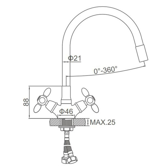Смеситель для кухни Accoona A4882G-1, двухвентильный, с гибким изливом, белый